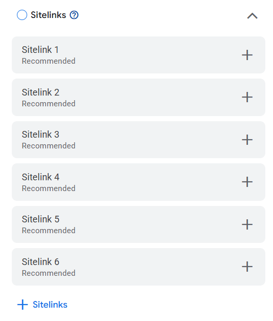 You can also include sitelinks here (which will be only applied to this Pmax campaign), but that might not be necessary if you already have +4 sitelinks at the account level that are also relevant for this campaign. Don’t duplicate the same sitelinks at the campaign and account levels. Don’t create too many sitelinks (between 6 and 8 per campaign is usually the best).