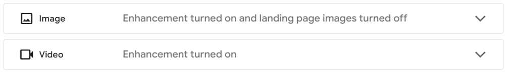 Image and Video Enhancement options are not important. You can leave them on if you want (video won’t apply at all for Ad Grants and image could help a bit with ad performance but usually not a lot).