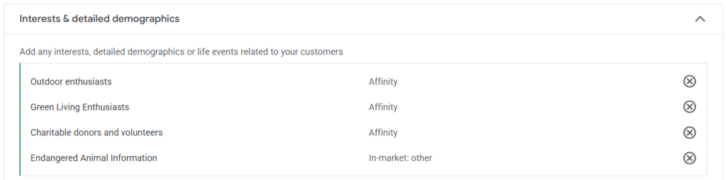 In-Market audiences: These are people Google has identified as actively looking to take a specific action. For example, people in-market for “volunteer opportunities” or “charitable donations.”