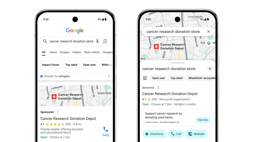 Even if your nonprofit’s primary work is not place-based, having a physical office or storefront means you can benefit from local visibility. Maps ads surface when people search for services, organizations, or locations in your area, and they include rich information such as opening hours, reviews, and directions.